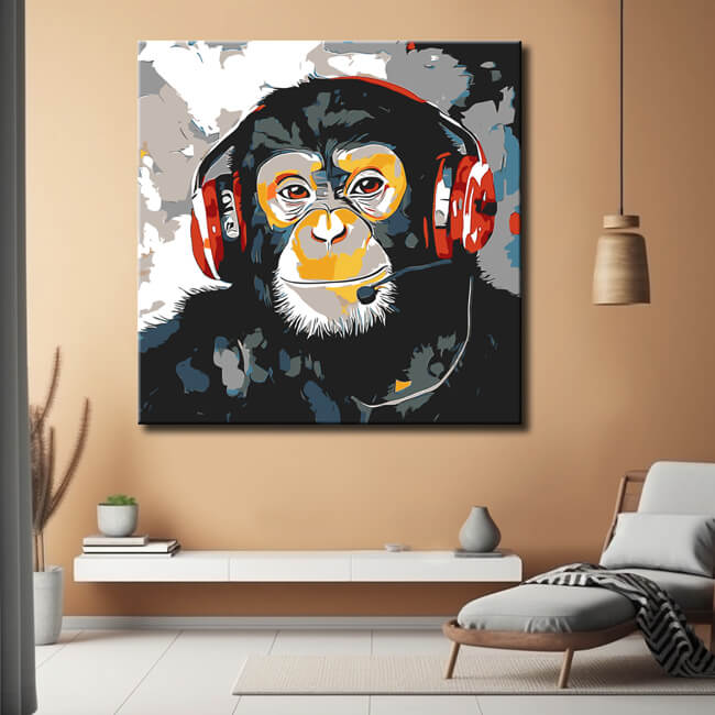 Painting by Numbers Monkey Listening To Music Modern Animal Art