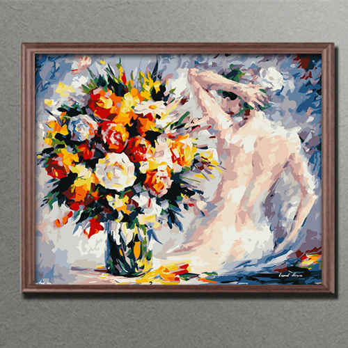 Painting by Numbers Nude Woman with Bouquet of Flowers Abstract