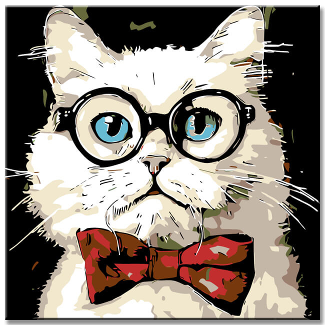 Painting by Numbers Art White Cat Glasses Bow Tie Around The Neck