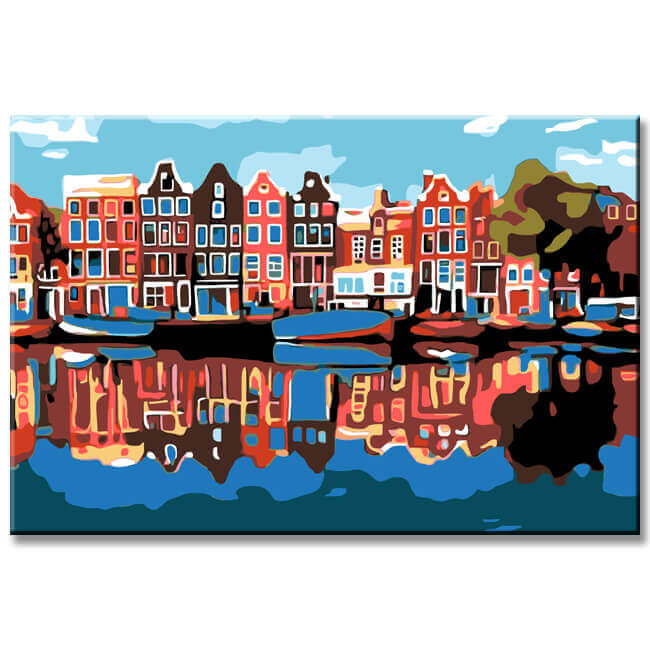 Painting by Numbers Art Landscape Houses Reflected in The Water
