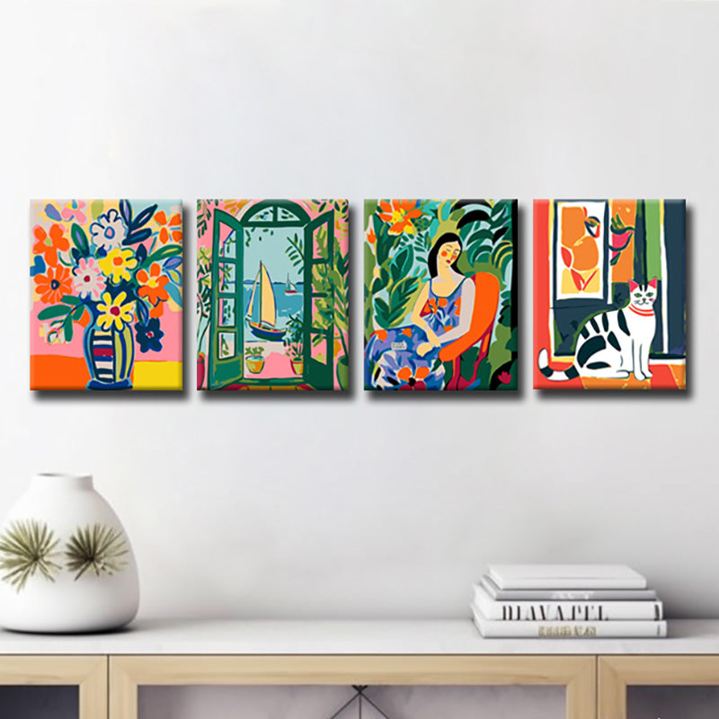 Fauvism Style Canvas ArtVibrant Still Life for Your Picture Wall 4-Panel