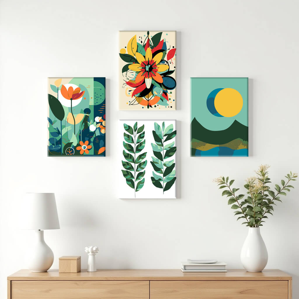 Die SmartArt Serie ist wie geschaffen für Bilderkombinationen. Ob abstrakte, Landschafts- oder farbenfrohe Pop-Art-Bilder – wähle mehrere Designs aus und arrangiere sie, um deinen Raum zu gestalten.
