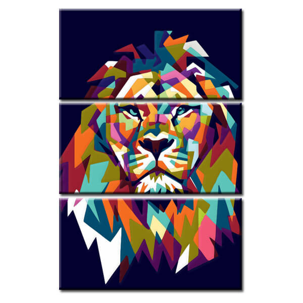 Painting by Numbers Art Animal Colorful Lion Face on A Dark Background 3 Panel