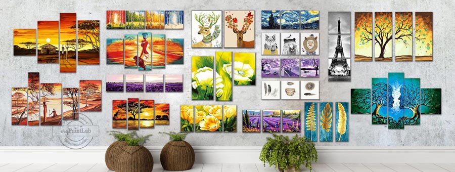 myPaintLab offers the largest production and formatting of raw materials in Europe. In terms of size, the sizes are 40*50cm and the standard sizes of the material are available in sets, the beets are large sizes (from 30x40cm to 80x180cm) and formats. We can also provide additional designs from 2 to 7-part designs in addition to large special Panorama Designs that cannot be produced by other providers.