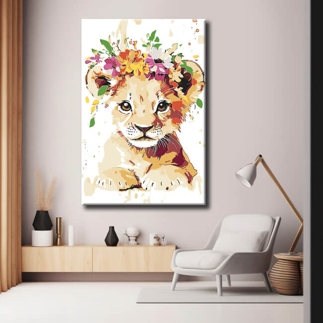 Painting by Numbers Art Animal Baby Lion with Flowers on His Head
