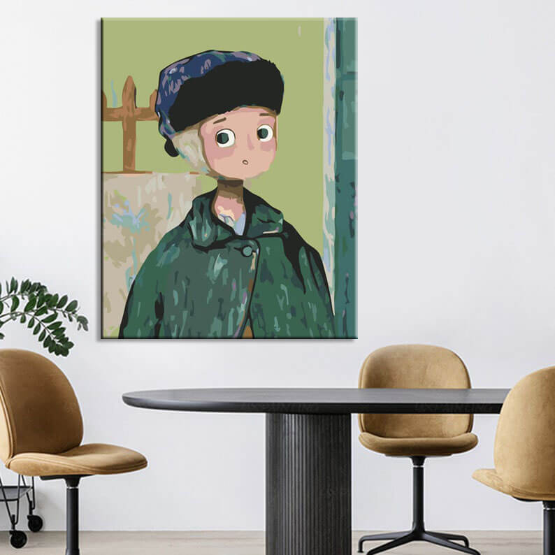 Paint by Numbers Art Boy with Green Cap and Jacket