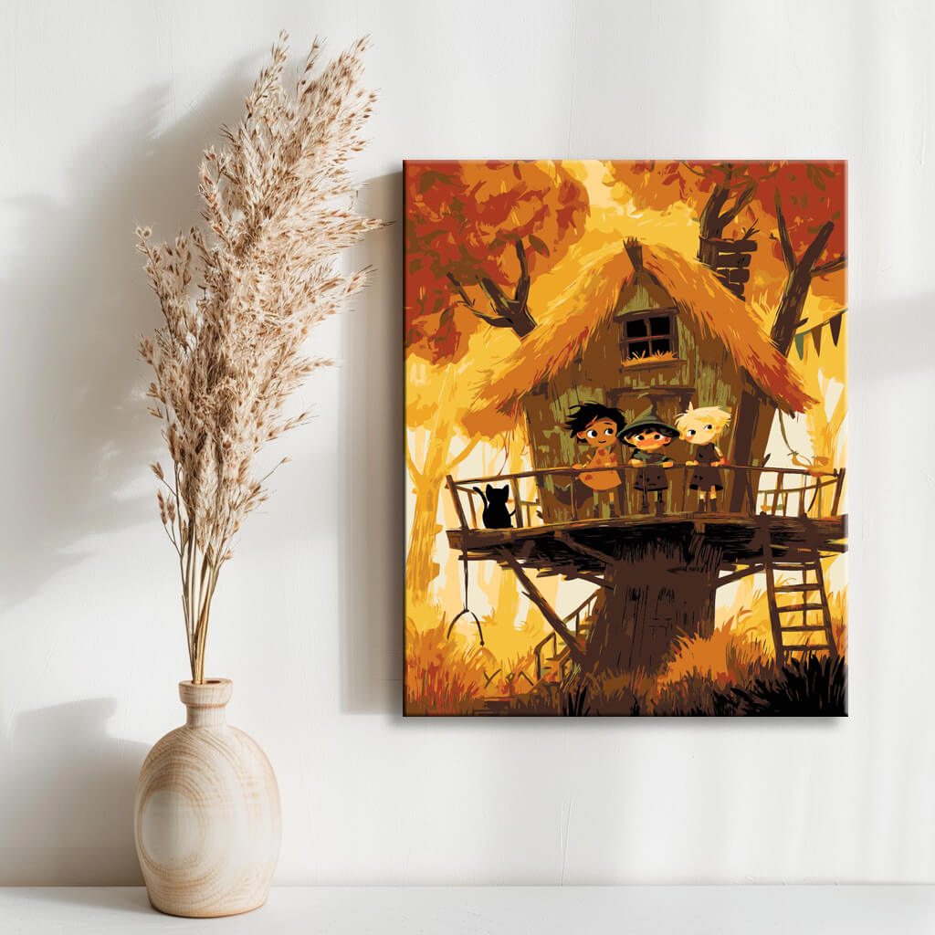 Paint by Numbers Art Illustration Halloween Treehouse with Children