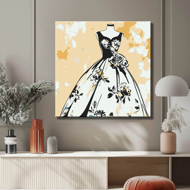 Painting by Numbers Art Lifestyle Black and White Dress with Flowers