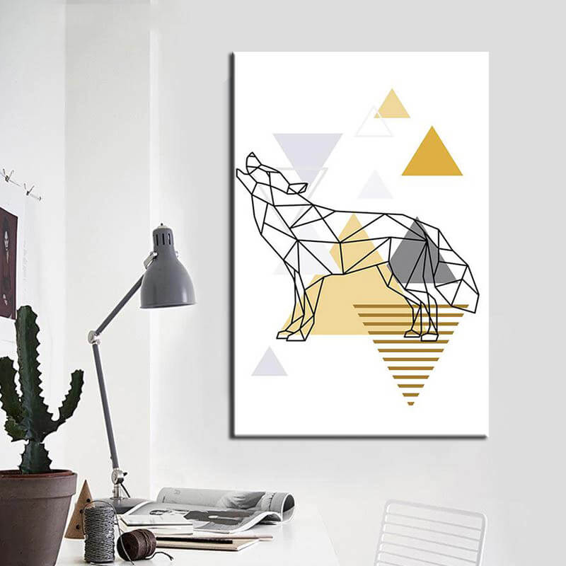 Paint by Numbers Art Line Drawing Geometry Polygon Howling Wolf