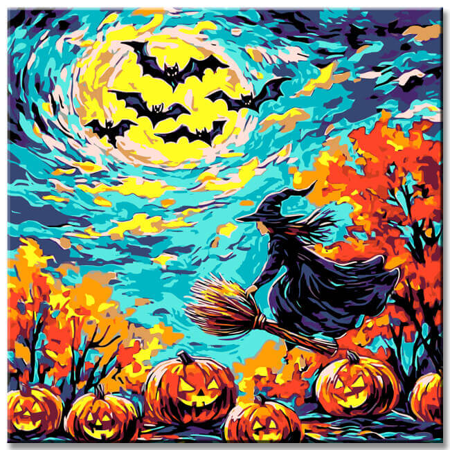 Painting by Numbers Art Nature Halloween Witch Flying on Broom
