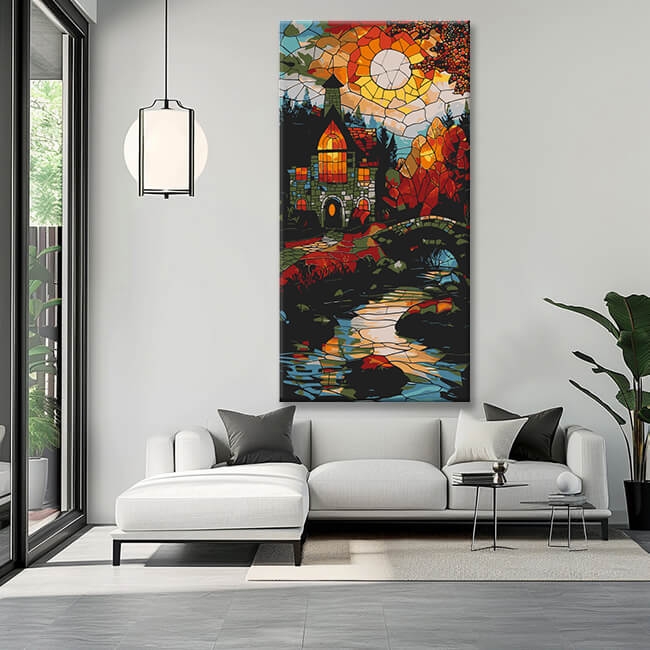 Painting by Numbers Panoramic House with Sun with Tiffany Style