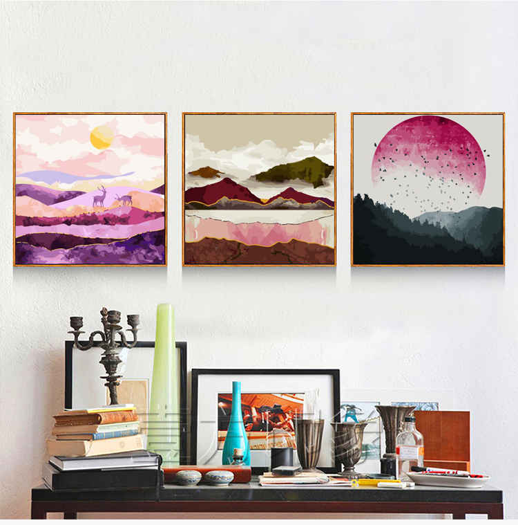 - DIY photo walls composed of multiple coordinated Paint by Numbers images