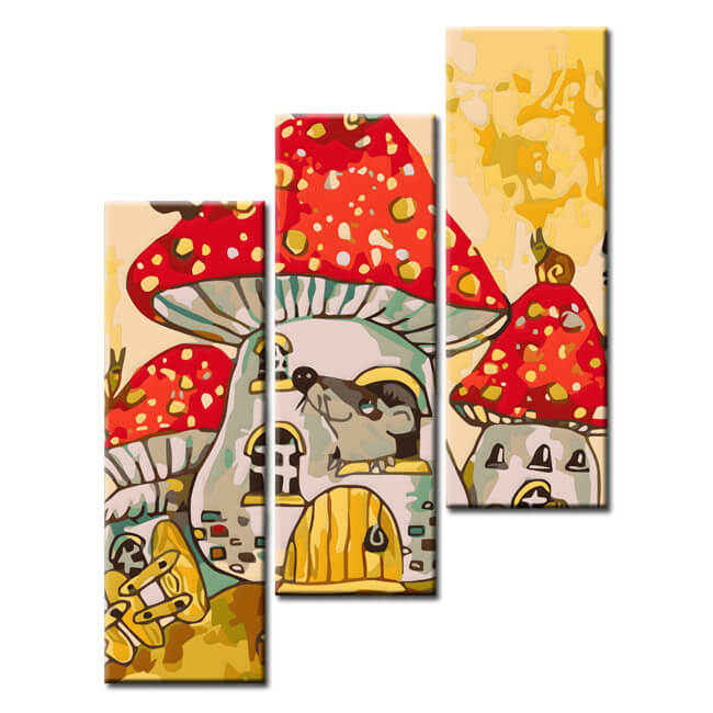 Painting by Numbers Art Illustration Toadstool House with Mouse, Butterfly and Snail 3-Panel-2